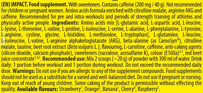 IMPACT COMPLETE AMINO ACIDS FORMULA est un supplément conçu pour un effet positif, vous permettant d'atteindre une ampleur comme jamais auparavant.