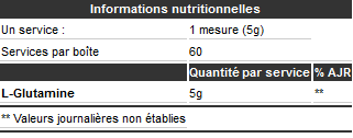 Compléter avec de la L-Glutamine supplémentaire aide à maintenir de hauts niveaux de Glutamine musculaires qui à leur tour accélère la réparation et la croissance des tissus musculaires. La consommation quotidienne de L-Glutamine aide à maximiser vos résultats de renforcement musculaire. GLUTAMINE DRIVE® est constitué de L-Glutamine pure. Il est non aromatisé et peut facilement être ajouté à n'importe quelle boisson de votre choix. L'ajout d'une cuillère de GLUTAMINE DRIVE® à votre boisson ou à votre repas après l'entraînement améliorera grandement la réparation musculaire et amènera votre corps à accélérer la croissance des tissus musculaires .
