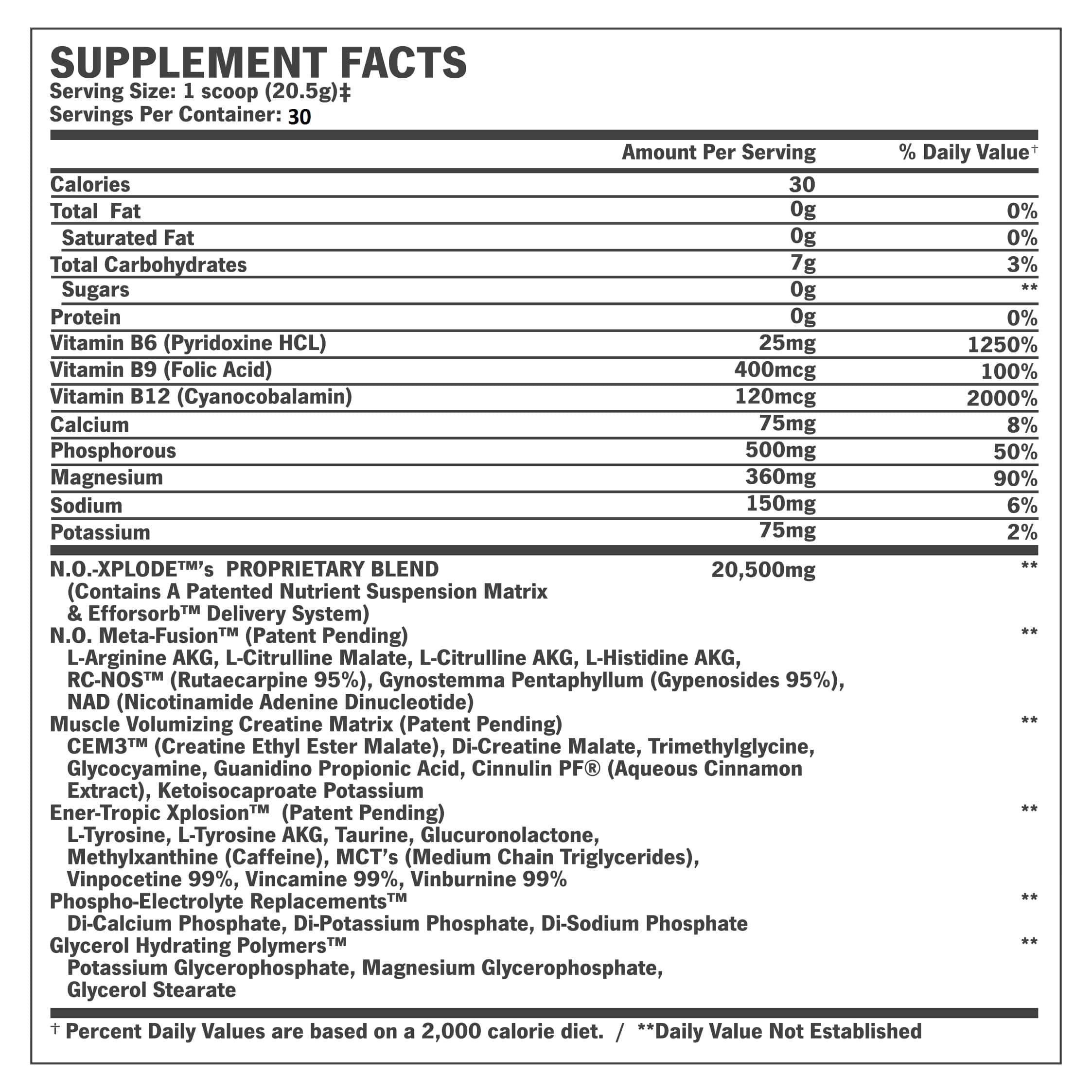 Avec le nouveau NO-XPLODE tous les facteurs de l’augmentation du volume musculaire sont réunis : Une matrice de créatine pour synthétiser plus de fibres musculaires, une matrice pour élever drastiquement les niveaux de NO (congestion et anabolisme) et enfin une matrice pour vous donner de l'énergie à l’entrainement et vous permettre d’effectuer les reps supplémentaires qui déclencheront la croissance musculaire.