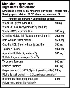 Dose pour adultes Prendre 1 portion (9 g) 1 à 2 fois par jour. Ajouter 1 portion (9 g) à 6-12 oz d'eau, bien mélanger et boire. Consommez 45 à 90 minutes avant de faire de l'exercice. Ne pas dépasser 1 cuillère par dose.