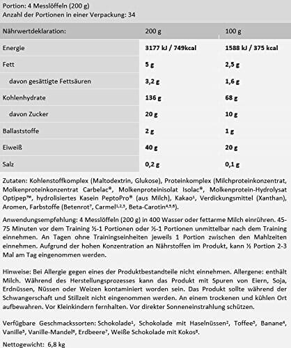 Gainer à haute teneur en calories à base de protéines (3177 kJ / 749kcal)
