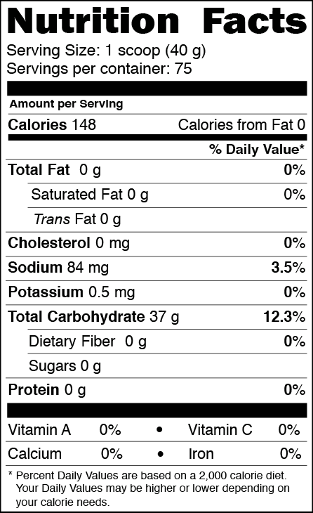WAXY MAIZE® est la découverte ultime et récente de glucides avec un poids moléculaire plus élevé et une assimilation plus grande que les autres hydrates de carbone. WAXY MAIZE® est un hydrate de carbone exclusif issu d'amidon de maïs cireux spécialement micronisé et aggloméré avec des propriétés uniques d'expansion du plasma. Ainsi fait un avantage athlétique supérieur.